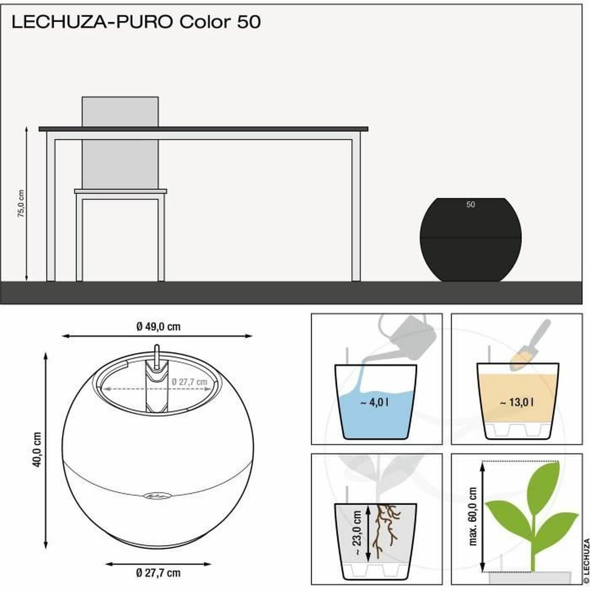 Vaso Autoirrigável Lechuza Cinzento Esfera está esgotado e será enviado assim que estiver de novo em estoque.