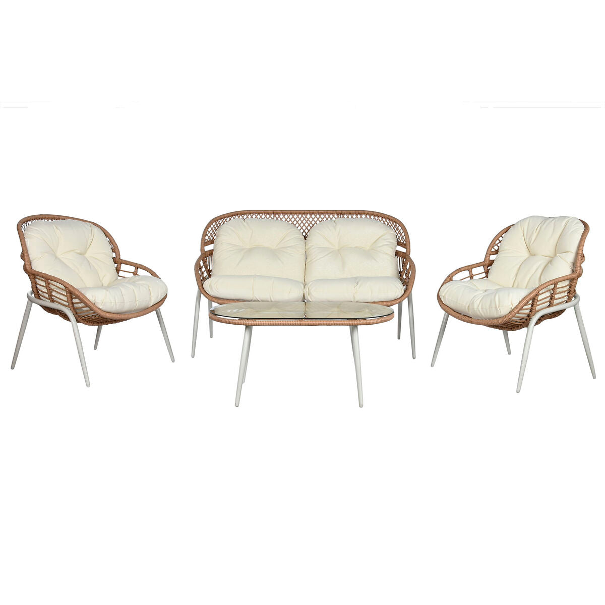 Table Set with 3 Armchairs Home ESPRIT White Black Beige Metal Crystal synthetic rattan 130 x 76 x 83 cm