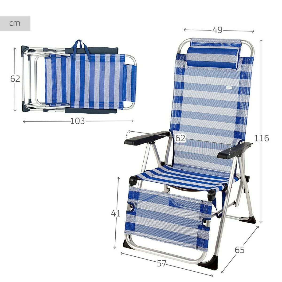 Reclining lounder Colorbaby textilene Aluminium Blue White 149 x 49 x 78 cm is backordered and will ship as soon as it is back in stock.