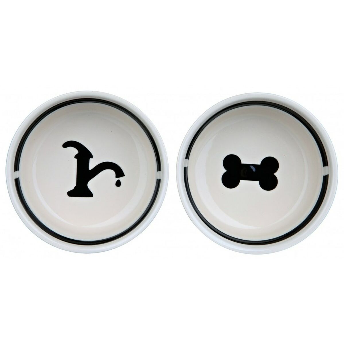 Comedouro para animais de estimação Trixie Duplo Tigela Branco Preto Cerâmico 0,6 L